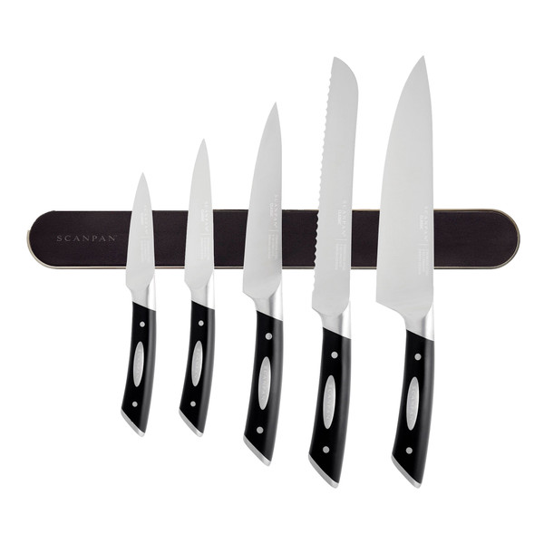 This SCANPAN Classic 6 piece magnetic rack set is perfect for people with minimal bench space who want to store their knives in a professional and safe way