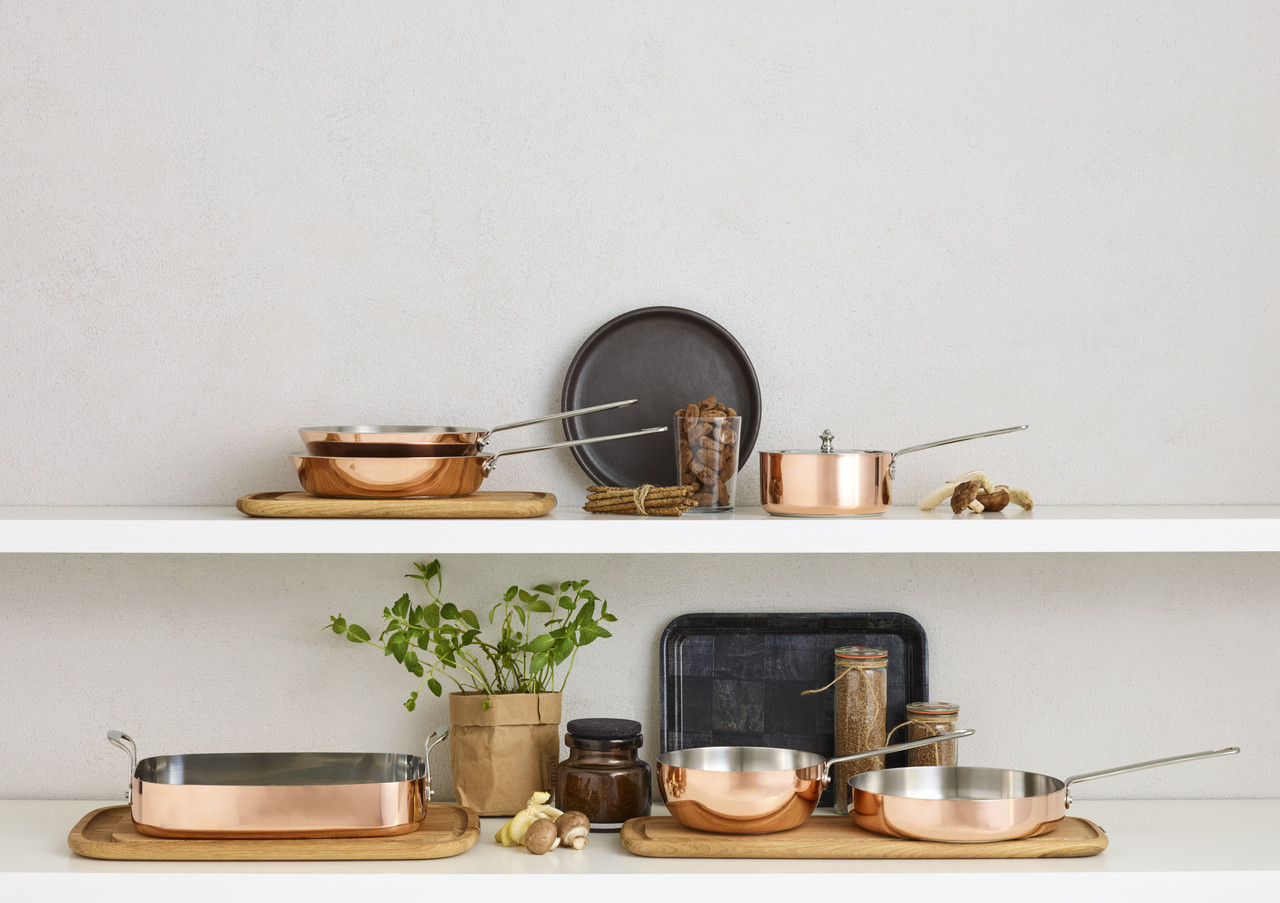 Maitre D Copper is SCANPAN’s unique induction-compatible copper cookware available in three popular Fry Pan sizes with Dutch Oven and Sauté Pan options also available. Together with a copper external shell, its multi-ply construction has a 1.8mm gauge aluminium core enveloped by copper on the outside and stainless steel on the inside and will deliver superior heat conductivity with a gauge more than 3 times thicker than regular single ply cookware . Handles are made from cast stainless steel and secured with heavy duty rivets. The base has an aluminium disc and covered with an induction steel cover plate.