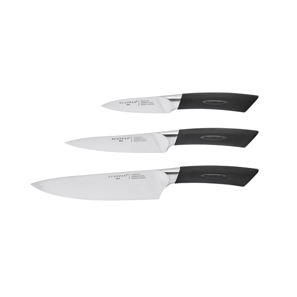 The SAX (meaning sword) range is the latest release from SCANPAN and features three very useful set configurations. All of the knives are heat-welded and the ergonomic handles have a grippy feel for comfort and safety. This range is only available in a 6 Piece Block Set and 2 x sets. The blades are made from high-quality German Stainless Steel and have a bolster designed for easy feel and greater comfort.