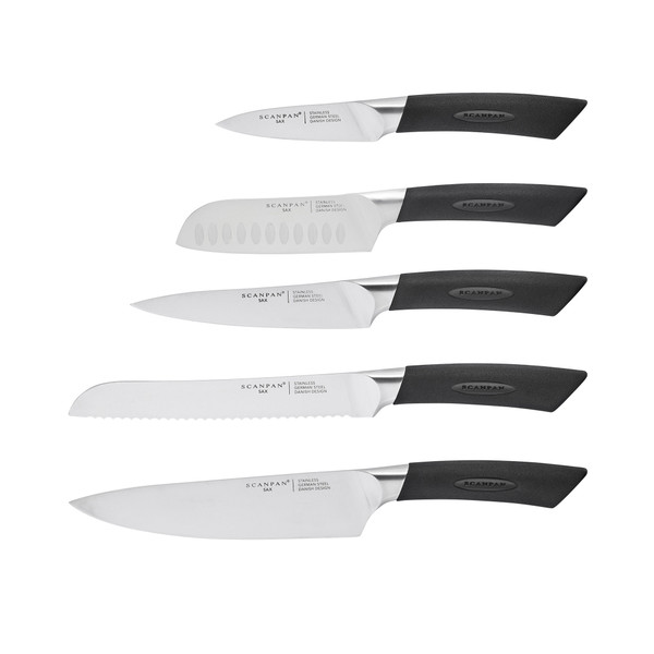 The SAX (meaning sword) range is the latest release from SCANPAN and features three very useful set configurations. All of the knives are heat-welded and the ergonomic handles have a grippy feel for comfort and safety. This range is only available in a 6 Piece Block Set and 2 x sets. The blades are made from high-quality German Stainless Steel and have a bolster designed for easy feel and greater comfort.